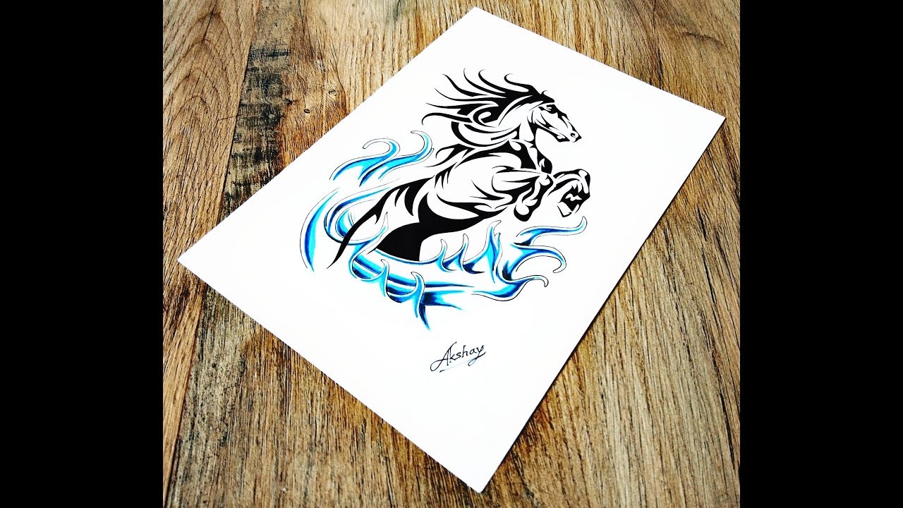 How to draw a tribal wolf head tattoo رسم ذئب #1.